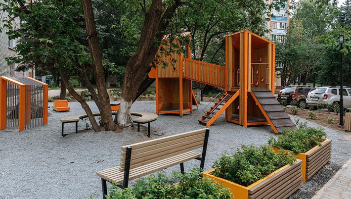Так, особое внимание блогер уделил обустройству детской площадки, а также площадки для воркаута, использование боксов с растениями вместо ограждений, приобретение уличной мебели у местных производителей во дворах в Зеленодольске.