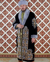 Особо ценилась одежда с меховой отделкой. И сейчас казахские национальные костюмы в Алматы часто включают в себя различные элементы из меха разных животных: енота, бобра, лисицы. Для традиционной одежды казахов характерны следующие элементы.