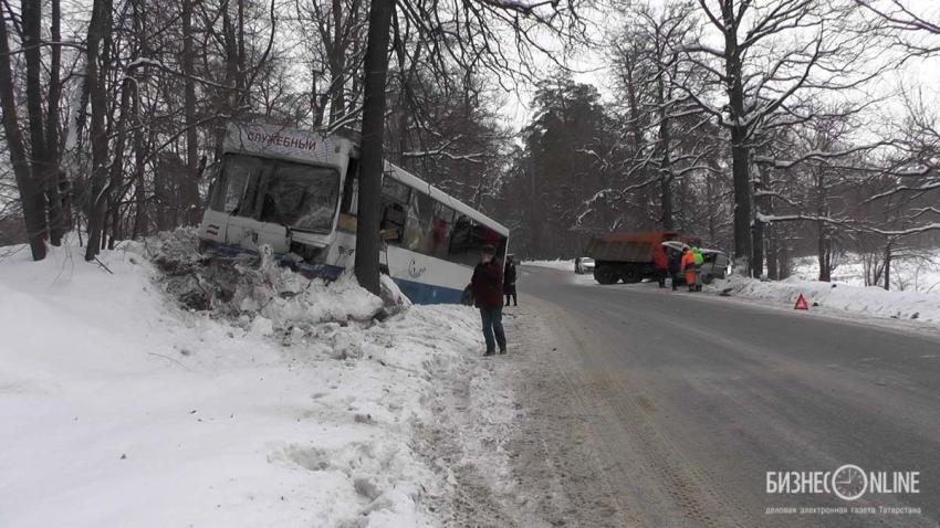 Серьезная авария, которая только по счастливой случайности не привела к жертвам, произошла в 8:30 утра на выезде из Зеленодольска. Водитель минивэна Hyundai Starex двигался по автодороге М7 "Волга" по направлению из Зеленодольска в Волжск. 49-летний мужчина был в минивэне один. Примерно в 15 км от Зеленодольска водитель Hyundai по фамилии Марков пошел на обгон "КАМАЗа" и выехал на встречную полосу для движения, но не справился с управлением и врезался в передний левый бок автобуса "НЕФАЗ". В автобусе в этот момент находились 25 сотрудников АО "ПОЗиС", водитель — 58-летний Виктор Васильев — вез их после ночной смены на заводе из Зеленодольска в Волжск. После столкновения, в минивэн врезался нагнавший его груженый цементом "КАМАЗ" под управлением Юрия Федорова. Hyundai развернуло и еще раз впечатало левым боком в большегруз.