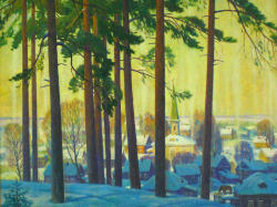 Вас очаруют знакомые и милые места Газиза Губайдуллина, где среди вековых, страшных и холодных сучьев, подобие лесных уродцев из сказки Роу, вдруг трогательно и безбоязненно стоит розовенькая от морозца девочка, которую одевает мама после деревенской бани. Работа Булата Гильванова «Оттепель» будит грусть от преходящих человеческих чувств. Почему на сине-сером фоне сквозь сумерки в руках у женщины зажат красный платок, чем он ей дорог? Ведь как символ стабильности семьи контрастирует с этим платочком синий ковер? Какая человеческая драма терзает ее сердце?