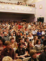 Такого наплыва зрителей Дворец культуры «Родина» не видел давно. Уже пробило 6 часов, а зрители все шли и шли. Были заняты не только кресла, но и оба прохода у стен, выставлены дополнительные стулья, ни одного свободного места на балконе.