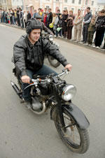 Ребятишек особенно привлекли два мотоцикла — черные, с кожаными сидениями «ИЖ 350» и «ТИЗ» АМ-600» 1937 года выпуска. Их хозяин Альберт Бикбулатов, одетый в кожаный плащ и шлем по моде 40-х годов, рассказал, что в его коллекции на сегодняшний день 12 мотоциклов, половина из которых на ходу. Собирал он их и по глухим деревням, и у перекупщиков, и теперь все свободное время проводит, реставрируя железных коней.