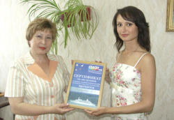 Итак, четвертого июля бессменный редакционный «барабан» выдал имя счастливицы. Пришедшие на розыгрыш подписчики с легкой грустью порадовались за нее, а мы подготовились к встрече. В присутствии фотокора редактор Нина Киркина и директор «АХАТ-тур» Элина Слободенюк вручили победительнице сертификат на две путевки по Волге до Самары на комфортабельном теплоходе «Жолио Кюри»!