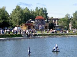Нептун и судомодели на Зеленодольском Дне ВМФ Отмечать День военно-морского флота – одна из устоявшихся традиций Зеленодольска, которая, к сожалению, была предана забвению более чем на десяток лет. Но год назад ее начали возрождать, а уже в нынешнем - этот день с нетерпением ждали как сами виновники торжеств (напомним, в городе расположена военно-морская часть, проектно-конструкторское бюро проектирует, а завод имени Горького строит корабли), так и горожане. По настоянию ветеранов день, как и положено, начался с поднятия Андреевского флота. В 9 утра на мостике между городскими озерами собрались ветераны ВМФ и представители органов власти. Под звуки горна на флагшток было поднято бело-голубое полотнище. Церемония транслировалась по всем радиоточкам и громкоговорителям города. Далее праздник переместился на городской пляж. В Зеленодольск вернулся День Нептуна! Владыке морей в сопровождении русалок, приехавшему на разукрашенной ладье, пришлось вызволять из плена пиратов Матушку-Волгу. Дети и взрослые активно помогали ему в этом. Театрализованное представление завершилось обливанием речной водой главных организаторов праздника. Праздник продолжился конкурсом «Мисс-бикини» и показом моделей боди-арт, которыми могли стать все желающие. Вечером на городском озере прошли массовые гуляния. По традиции здесь прошел показ моделей юных судомоделистов ДК им.Горького, СК «Метеор», СК «Бригантина». Действующие модели новых разработок представили конструкторы ЗПКБ. Большой интерес вызвала выставка «Зеленодольск – город корабелов», подготовленная специалистами проектно-конструкторского бюро. Зеленодольцы смогли познакомиться с моделями кораблей, спроектированных в бюро. Концертная программа началась с выступления духового оркестра Казанского артиллерийского училища. Военные марши, вальсы и даже попурри на тему песен «Аббы» в исполнении оркестра порадовали горожан и гостей города. От имени Главы Зеленодольского муниципального района ветеранов и горожан поздравила с праздником заместитель Председателя Совета ЗМР Венера Рахимова. Она, в частности сказала, что история Зеленодольска тесно переплетается с судостроением. Корабли, спроектированные в ЗПКБ, несут службу практически на всех флотах России. Ежегодно служить в военно-морской флот отправляется не менее 40 призывников из города и района. С поздравлениями выступили Генеральный директор ОАО "Зеленодольское проектно-конструкторское бюро" Леонид Шарапов, а также ветераны ВМФ, после чего была дана команда спустить Андреевский флаг, под «Зарю» духового оркестра. Ветеранов в парадной форме, которые выстроились у сцены, оформленной в виде палубы корабля, все присутствующие поприветствовали аплодисментами. Праздник продолжился выступлением творческих коллективов города и дискотекой.