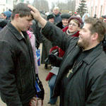 Призыв-2005: отец Владимир благословляет новобранцев. Фото Марата Хаялутдинова