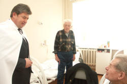 Накануне Дня пожилых людей несколько квартир, отремонтированных бесплатно, объехали руководители Совета ЗМР и представители совета ветеранов. А позже все собрались в фойе терапевтического корпуса: гости, пресса переоделись в халаты и бахилы и поднялись на второй этаж. Шесть светлых просторных палат отведены под новое отделение для ветеранов, оно может принять одновременно от 25 до 30 человек.