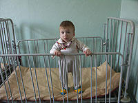 Здесь нас уже встречают как хороших старых знакомых. Отправляемся на четвертый этаж, где самые маленькие. Все привезенные вещи и игрушки по санитарным правилам сначала будут отправлены на обработку. А вот связанные новенькие носочки нам разрешили надеть на малюток. Сейчас в больнице 9 мальчиков и 1 девочка, оставленные нерадивыми мамашами.
