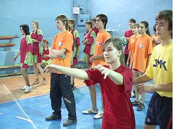 Торжественное построение команд, сдача рапорта — и соревнования начались. Спортсмены демонстрировали умение обращаться с мячом, обручем и скакалкой, бегали, подтягивались, а болельщики азартно поддерживали своих: свистели, гудели и скандировали, как на большом стадионе.