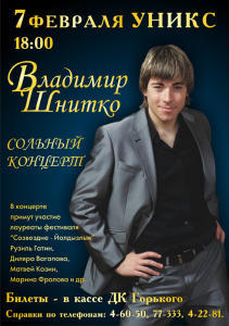 А увидеть и услышать нашего талантливого земляка вживую можно будет на его сольном концерте в казанском «УНИКСе», который пройдет 7 февраля следующего года. Информация о сольнике – Группа Владимира «В Контакте» -
