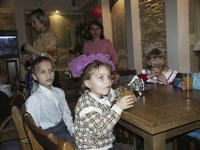 Поверьте, это здорово! Взрослые посетители могут отмечать наверху свои банкеты, юбилеи, свадьбы, а дети в нижнем зале весело проведут время в компании и под присмотром заводилы-клоуна и своих хороших друзей. Раз уж организация детского кафе в нашем пенсионерском городе заведомо убыточна, то вот такие выходные – вполне реальное и благодарное дело. Можно просто, уходя на рынок или по другим делам, оставить здесь на пару часов ребенка и спокойно заниматься своими заботами. К сожалению, детям без родителей не доступны такие удовольствия. Поэтому акции, подобные этой, - словно наша дань маленьким зеленодольцам, оказавшимся ненужными людям, родившим их на свет. Пускай хоть иногда они почувствуют, что мир не ограничен только стенами их теперь родного, но все-таки казенного дома…