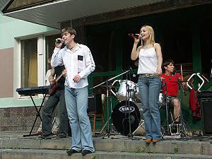 Тогда я встретил Эмиля Абдуллина (когда-то он пробовался к нам в группу «Галерея»), поговорили, дали объявление - и нашли барабанщика Андрея (это все, что я о нем помню). Ну и начали делать программу: Эмиль отличался яркой харизмой и напором, поэтому дела пошли лучше. Играли три дня в неделю, много репетировали. Тогда же Эмиль рассказал мне о начинающем барабанщике Диме Шнитко - в то время он служил в армии и как раз пришел в отпуск (Андрей в это время нас покинул). Втроем мы сели в «Газель» и поехали в Москву за барабанами. Шнит в красном трико с оттянутыми коленками, я - в шортах на два размера меньше и Эмиль - с бородой, как у ваххабита - мы шлялись по крутым музыкальным магазинам столицы. Встретили Саруханова, «Дельфина» я уговаривал продать нам барабаны: тот офигел от такой беспардонности, говорит: «я тут гитару покупаю», а я ему – «а почему барабаны не продаешь?» Мы потом долго вспоминали эту историю... В общем, с трудом приехали из Москвы, Дмитрий уехал дослуживать - а мы на время его отсутствия взяли барабанщиком Шамиля Бикчентаева - хорошего, ровного барабанщика.