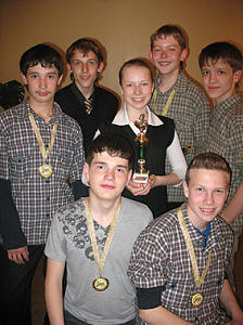 Для кого-то этот год кризисный, а для наших КВНщиков — урожайный. Уже на фестивале детской республиканской лиги они получили второе место. В четвертьфинальной встрече заняли второе место и прошли в полуфинал. Его игры, как правило, бывают самые сильные, потому что командам дается больше времени накопить «убойный» материал. Но «Смех столбом» время терять не стали и между 1/4 и 1/2 финальной встречами съездили в Ленинградскую область на Всероссийский фестиваль юниор-лиги КВН, откуда домой вернулись с победой.