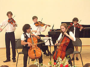 Не отстают, стараются и самые маленькие – ансамбль скрипачей младших классов под руководством Анжелики Алиевой.