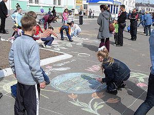 — В память об этих маленьких героях 9 мая Центр детского творчества организовал конкурс рисунков на асфальте на площади ДК «Родина», — рассказывает заведующая отделом декоративно-прикладного творчества Марина Никитина. — В конкурсе приняли участие ребята из школ №№ 1, 7, 9, 10, 11, 15, им помогала педагог-организатор Вера Тутаева. С каким энтузиазмом дети принялись за работу! Площадь постепенно превращалась в разноцветную поляну, в каждой краске которой светилась гордость за нашего солдата и радость за мирную и счастливую жизнь.