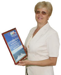 Она получает красивую рамочку с сертификатом из рук директора компании «АХАТ-тур» Элины Слободенюк. Победительница взволнована радостным событием, говорит, что и не предполагала, что выигрыш достанется им.