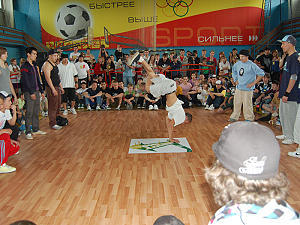 ...Когда о брейк-дансе узнали в Европе, она была охвачена лихорадкой: любой парень, умеющий танцевать брейк-данс, становился героем. В СССР первая волна брейк-данса началась в 80-х годах. Источником информации были фильмы, которые привозили из-за границы. Пионером брейк-данса стал джазовый ансамбль «Арсенал». Его руководитель Алексей Козлов строит танцевальную часть концертов на основе би-боинга и покоряет публику. 1985 год. Возникают первые команды: «Меркурий», «Магический круг».