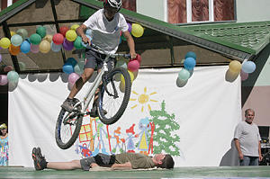 — Велотриал — это преодоление трассы, состоящей из естественных и искусственных препятствий, например, речки и подъемы. Важно научиться прыгать и держать равновесие на велосипеде. В прохождении дистанции нужно уложиться за две с половиной минуты. Если наберешь больше пяти штрафных очков за касание частью тела какой-нибудь поверхности, то снимаешься с дистанции.