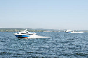 Суда «Михаил Годенко» и «Иван Назаров» предназначены для перевозки до 100 пассажиров, дальность хода — до 650 километров, скорость — 70 километров. Отметим высокую маневренность, способность причаливать к необорудованному берегу. В сентябре прошлого года и июне этого заказчику (администрация Красноярского края) ушли серийные (А45-1) «Енисейск» и «Красноярск». Как говорят заводчане, контракт с Красноярском выполнен полностью. Есть ли новые заказы на скоростной теплоход А45-1?