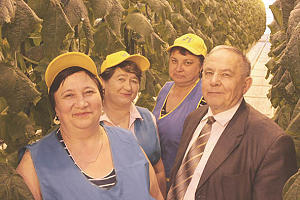 Заместитель директора Николай Владимирович Мишин дает краткую характеристику показателей. Численность работающих 1400 человек (ежедневно два автобуса привозят людей и из Зеленодольска), сокращать в связи с кризисом никого не стали. Объемы производства ежегодно продолжают наращивать: так, в 2008 году собрали 23, 5 тысячи тонн, в 2009 — 26,5. На 38 гектарах выращивают пчелоопыляемые короткоплодные огурцы, на 10 — длинноплодные, на 1,5 гектарах — томаты, перец, баклажаны, зеленные (более десяти видов: салаты, петрушка, базилик), клубнику. Всего под стеклом — 50,6 гектара. В связи с кризисом средняя зарплата понизилась на 2400 рублей.
