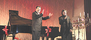 — Учащиеся десятого класса специальной музыкальной школы, лауреаты многочисленных конкурсов, обладатели Гран-при международного конкурса в Австрии Мария Сабелькина, Максим Сабелькин! Композитор Бородин: «Половецкие пляски» из оперы «Князь Игорь» для двух роялей, концертная транскрипция Рэма Урасина.