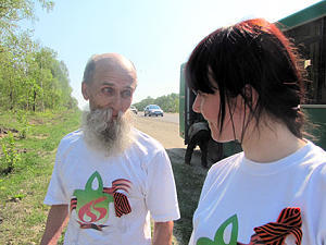 Проезжавшие мимо нас водители сигналили, махали руками, кричали поздравления с Днем Победы. Было приятно!