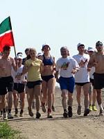 В Казани на Горьковском шоссе зеленодольскую команду, облачившуюся в белые футболки и кепки с символикой марафона, весело встречали казанские любители спорта. Вот уже несколько лет марафонцы из Казани и Зеленодольска вместе бегут дистанцию в 37 километров.