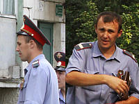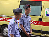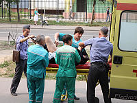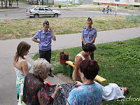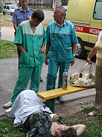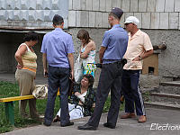 Тут было принято решение взять всё в свои руки. Спустившись к женщине, попытался сам лично выяснить что и как. Но она только просила помочь ей как-нибудь, и говорила что у неё отнялись ноги. Взяв в руки телефон, я начал обзвон служб. Первым делом я набрал 03, объяснив что и как я получил ответ:" Мы выезжали по данному адресу, пациент отказался от мед. помощи, просил довезти до дома в Зелёный Дол. Мы не такси, возить никого не собираемся. Ваш вызов не принимаем". Объяснив им ещё раз, что у женщины отнялись ноги и она не способна передвигаться, что ей требуется медицинская помощь, очередной раз получил отказ... Потребовав от диспетчера скорой помощи номер моего звонка, мне так же ответили отказом, сославшись на то что у них нет никаких номеров. С трудом удалось выяснить фамилию диспетчера, ей оказалась некая Зайнуллина, которая посоветовала позвонить по этому вопросу глав. врачу ЦРБ. Следующий звонок я попытался сделать в соц. защиту, перенаправляя с номера на номер, отговариваясь что это не в их компетенции в конце концов кто-то записал адрес и пообещал помочь. Попытки дозвониться на горячую линию главы ЗМР не увенчались успехом, трубку никто не брал. Следующий звонок был в 02, выслушав суть вопроса дежурный сказал что уже звонили и начал жаловаться на то что соответствующие службы такие как Скорая помощь, не хотят работать и всё сваливается на них.Ещё был задан интересный вопрос: "Она что общественный порядок нарушает" (Если бы я полуголый лежал у себя под лавочкой такого вопроса даже бы не возникло, и звать даже никого не надо было бы). Но в итоге сказал что вышлют людей и разберутся. Милиция на этот раз неподвела и прислала двух сотрудников: Сёмина и Канофеева, которые очередной раз, уже со своих мобильных телефонов пытались убедить Скорую помощь приехать. Им это удалось. Тем временем прибыли две работницы соц. защиты., они смогли найти адрес проживания и ещё какие-то данные... Чуть позже появилось ещё два сотрудника ППС, один из которых заметив в моих руках фотокамеру тут же бросился ко мне, началось всё банально с документов, потом какая-то невнятная речь о том что мне почему-то нельзя фотографировать без его разрешения и.т.д, а закончилось угрозами в мой адрес, что если я размещу фотографию с ним где либо.... то город маленький и мне это с рук не сойдёт. Через минуту разговора он и его напарник решили ретироваться. По просьбе этого сотрудника ППС я размещаю его фотографию на портале. Ещё минут пять и, о чудо!!! приехала карета скорой помощи. К тому времени жильцы подъезда нашли какие-то вещи для пострадавшей, одели её. Ещё 5 минут препираний между милицией и скорой и женщину наконец-то положили на носилки и погрузили в скорую.