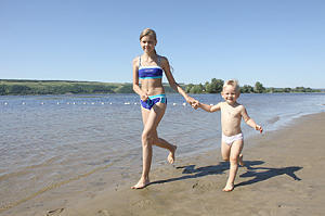 — ...если на флажке желтый круг – купаться можно, если черный – купание запрещено! Оповещающий флаг поднимается по рекомендации МЧС. Режим работы пляжа с 9 до 20 часов. Установлена наблюдательная вышка, дежурят спасатели и медики. Особо выделена детская зона, отмеченная буйками, – там чистое дно.