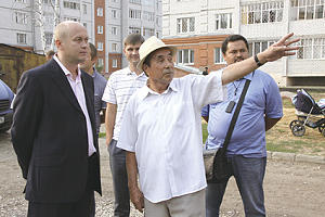 — Мы специально выбрали этот двор, — поясняет руководитель Департамента ЖКХ г.Зеленодольска Олег Анисимов. — Здесь живут очень инициативные люди. К примеру, старший по дому. Он хоть и пенсионер, но даже молодые позавидуют его энергии.