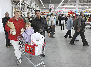 В день открытия в магазин пришли очень много покупателей, но давки и очередей не было – в торговом зале установлено 16 касс.