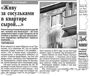 Опубликованный в «Зеленодольской правде» материал «Живу за сосульками в квартире сырой» (№№ 8-12 от 19.01.11) стал поводом для рассмотрения поднятого в статье вопроса в Зеленодольской городской прокуратуре.