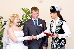 Зеленодольским конкурсантам – Екатерине Романовой и Лейле Нурмухаметовой помогали молодые супруги Михаил и Мария Игнатовы, Михаил и Ольга Егоровы. Они зарегистрировали свой брак 5 марта 2011 года, а спустя две недели в том же зале для торжественных церемоний только играли роли жениха и невесты. От всей души благодарна «актерам» заведующая Зеленодольским отделом ЗАГС Римма Закирова: «Конечно, свадьба – красивый ритуал, но очень хлопотный. Многие из молодоженов и большинство родных, близких так устают от непременного соблюдения всех правил и традиций, что в глубине души радуются окончанию и официальной части, и застольной. Большое спасибо Игнатовым и Егоровым, их друзьям и родственникам, которые поддержали конкурс, повторив бракосочетание на «бис». Надеюсь, что продублированное торжество удвоит благополучие и любовь новой семьи!»