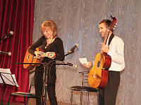 15 апреля в концертном зале ДМШ состоялся концерт Евгении Ахмадуллиной и Евгения Гарипова. На сцене звучали бардовские песни А.Суханова, С.Никитина, Б.Окуджавы, О.Митяева и других авторов.