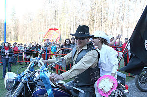 В районе администрации колонну возглавил руководитель ЗМР Сергей Батин. Таким – в кожаной куртке и на мотоцикле – нашего мэра мы еще не видели. Колонна, более чем в сотню двигателей, в сопровождении машин ГИБДД и замыкающей спортивной «бэхи», двигалась к «Маяку», где ее ожидали зрители.