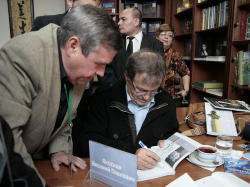 Одно из мероприятий феста — встреча с читателями в гипермаркете «Книжный двор». Здесь все желающие смогли посмотреть на звезд современной литературы России и зарубежья Беллу Ахмадуллину, Александра Кабакова, Светлану Васильеву, Анатолия Гладилина, Михаила Генделева, Евгения Попова, главного редактора журнала «Октябрь» Ирину Барметову и, конечно, самого Василия Аксенова и получить автограф. Очередь перед гипермаркетом была впечатляющая. Да и в самом магазине было не протолкнуться — особенно возле Аксенова и Ахмадуллиной…
