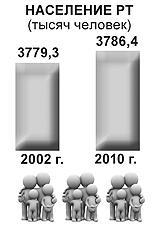 По предварительным данным при проведении Всероссийской переписи населения 2010 года в Татарстане учтено 3786,4 тыс. человек, постоянно проживающих в республике.