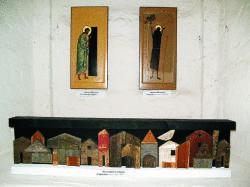 После встречи в мастерской я вернулась в храм, где проходила выставка... В тихом, пустынном зале — необычные работы островных художников.