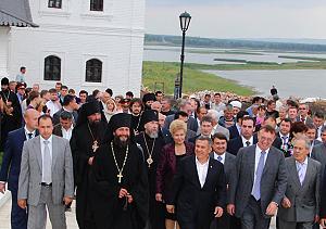 Здесь налажена подача электрической энергии на постоянной основе. Скоро будут демонтированы воздушные линии. Уйдет еще одно препятствие для включения этого памятника культуры в список Всемирного наследия ЮНЕСКО. Мачты высоковольтных линий, возвышающиеся над островом, явно не украшали исторический ландшафт – памятник культуры не должен быть опутан паутиной проводов. Старая воздушная линия проходила через реку Свияга, теперь проложили подземный кабель, подающий электроэнергию с подстанции в п.Нижние Вязовые. На острове установлены семь трансформаторных подстанций БКТП, по территории всего поселения кабели спрятаны под землю. Как пояснил заместитель руководителя исполкома ЗМР Ирик Махмутов, демонтаж высоковольтных мачт может быть осуществлен в первой половине 2012 года, пока их используют как резервные. Остров-град интересен для историков именно тем, что здесь сохранен историко-природный ландшафт. Свияжск по праву займет свое место в списке Всемирного наследия ЮНЕСКО. Кстати, в здании местного Центра образования для детей дошкольного и школьного возраста создан кабинет Поволжского отделения кафедры ЮНЕСКО. Открытие Центра образования со школой, оборудованной самой современной техникой, и детским садом «Островок» на двадцать мест – тоже стало значимым событием для островитян. В последние дни остров град-Свияжск подарил нам много хороших новостей. На днях здесь состоялось открытие восстановленных корпусов Богородице-Успенского мужского монастыря, а также отреставрированной Троицкой церкви Иоанно-Предтеченского монастыря. На торжество приехали министр транспорта РФ Игорь Левитин, Президент Татарстана Рустам Минниханов, Государственный Советник РТ Минтимер Шаймиев, премьер-министр РТ Ильдар Халиков и другие гости. Захватывает дух, когда осознаешь, как давно построен этот памятник культуры: Троицкая церковь была освящена 17 мая 1551 года. Во время ее реставрации были выполнены: демонтаж боковых крылец, веранды и поздней обшивки; устройство кровли трапезной, храма и алтаря; замена сгнивших конструктивных элементов и установка протезов; воссоздание западного крыльца; благоустройство территории. – Это только начало, – сказал архиепископ Казанский и Татарстанский Анастасий. – Через год восстановленные храмы примут надлежащий вид. Сюда будут приезжать туристы и паломники, чтобы прикоснуться к памятникам духовности, которые удалось сохранить в Татарстане». Министр транспорта и Президент Татарстана были приятно удивлены увиденным. «Свияжск станет одним из самых красивых мест в России, – сказал Р.Минниханов. Мы будем гордиться тем, что в Татарстане есть такая православная святыня. И работы впереди еще много». В восстановленном корпусе Свияжского Богородице-Успенского мужского монастыря будут размещены жилые и административные помещения: кельи, рабочие кабинеты, комнаты совещаний, столовая с трапезной, храм с алтарем. Были осмотрены восстановленные архимандричий корпус и монастырское училище. Президент РТ поблагодарил за работу по восстановлению памятников истории Государственного Советника РТ Минтимера Шаймиева, татарстанских инвесторов: «В очередной раз мы радуемся переменам, которые произошли в Свияжске. Те объекты, которые мы сдаем, – это серьезные инвестиции, объекты общероссийского значения». Бла