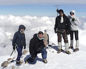 Зеленодольские туристы совершили восхождение на высочайшую вершину Европы – Эльбрус. Руководил походом мастер спорта Геннадий Иванов. «Эльбрус на тысячу мет¬ров выше Белухи (Алтай), на которую мы поднялись в прошлом году, – поделился Геннадий Анатольевич. – Но технически покорение Эльбруса проще. Пусть он выше, но не требуется особой техники. Нужна просто хорошая физическая подготовка». В окрестностях Эльбруса очень красиво: небо чистое и на его голубом фоне виднеются две заснеженные вершины. Базовый лагерь зеленодольцы разбили на высоте 2500 метров на поляне Эммануэля. Именно отсюда было первое восхождение на вершину. «Генерал Эммануэль пригнал почти тысячу человек (казаки, солдаты), – рассказывают туристы. – Кроме одного пастуха, которого брали как гида, никто тогда не взошел. Генерал в подзорную трубу наблюдал, как пастух добрался до вершины». Эльбрус – очень популярен среди альпинистов: рядом разбили биваки испанцы, австрийцы, чехи… На его вершины можно подняться с четырех сторон, проще всего с юга, но в этом году Баксанская долина закрыта, там проводится антитеррористическая операция. Знаменитый «Приют одиннадцати» и лагерь «Бочка» пустуют. Зеленодольцы покоряли Эльбрус с севера. Как собирали команду В воскресном походе близ Яльчика Геннадий Иванов встретился с Максимом Вороновым и его супругой Аней. Оба уже бывали на Алтае. Максим работает промышленным альпинистом. Четвертого участника встретили на фестивале «Мамокабо» в селе Русское Луговое. «Михаил Марон, предприниматель из Казани, никогда не бывал в горах, но у него огромная сила воли, – рассказывает руководитель экспедиции. – Перед походом Миша пообещал, что сфотографируется в кресле с бутылкой коньяка на вершине Эльбруса. И он потащил в горы раскладное кресло, хотя на высоте каждый лишний грамм ощутим». Горная болезнь «Горняшка» проявляется по-разному: чаще болит голова, возникает тошнота, на кого-то нападет беспричинный смех, а кто-то начинает плакать. Считается что для акклиматизации перед восхождением надо девять-десять дней. Зеленодольцы акклиматизировались пять дней (время поджимало), восхождение начали на шестой – всех прихватила гипоксия. Во время подготовки совершали акклиматизационые выходы на высоте четырех тысяч мет¬ров. На склонах опасные трещины (до 400 метров). На западную вершину обычно начинают восхождение с высоты 3800. Палатки ставят на морене (край ледника), выходят в час ночи. Чтобы не идти в ночи с фонариками через трещины, зеленодольцы решили поставить палатки на высоте 4600-4800. Опытные гиды отговорили ставить палатки на большой высоте: каждое движение дается с большим трудом, окапываться в снегу сложно. И ветер – 20 метров в секунду, порой вдвое сильнее, ураганный. Скалы Ленца – застывший лавовый поток, для акклиматизации зеленодольцы уже поднимались туда, видели разбившийся вертолет и установленный военными автомобильный кунг (кузов-фургон). Договорились с военными о возможности переночевать в этом вагончике. Кунг стоит под наклоном, с полок скатываешься, поэтому скорее дремали чем спали. Вперед к вершине! На западную вершину Эльбруса поднимались три с половиной часа. В этот же день совершал восхождение альпинист из Тувы с опытным гидом; идя вместе с ними, ориентироваться было легче. Больше всех досталось Михаилу Марону, «дыхалки» не 