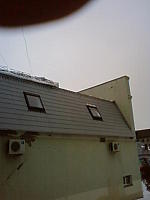 Крыша здания. День второй. Упала секция ограждения. Видно также разбитое окно.