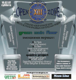 В обращении появились флаеры party «OPEN XIII ZONE». 10 февраля кафе-клуб «XIII» станет местом встречи красивых и интересных людей: в эту ночь здесь откроется новая клубная зона города. Для желающих попасть на акцию, сообщаем, что флаера можно найти в кафе-клубе и у организаторов вечеринки. Инфа о предстоящей на