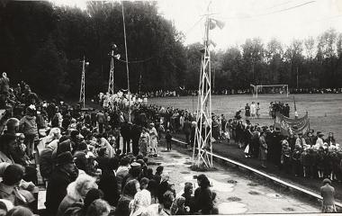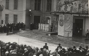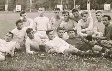 Футбольная команда "Судостроитель" с завоеванным Кубком чемпионата ТАССР 1953 года