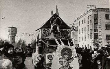Агитационная конструкция на пересечении улиц Ленина и Заикина (1979 год)