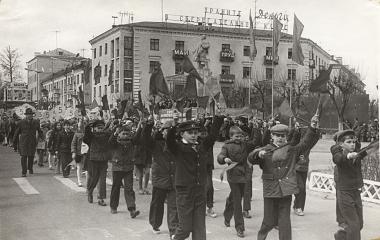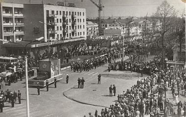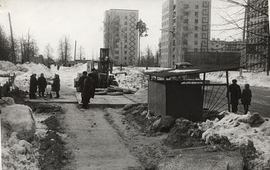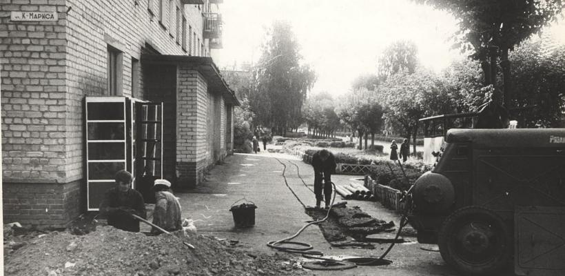 Устройство тротуаров из железобетонных плит на улице Заикина (1979 год)