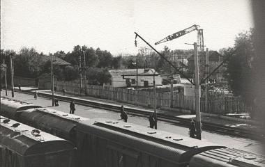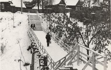 Деревянный мост-переход в створе улиц Стахановская и Станиславского (1976 год)