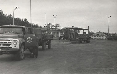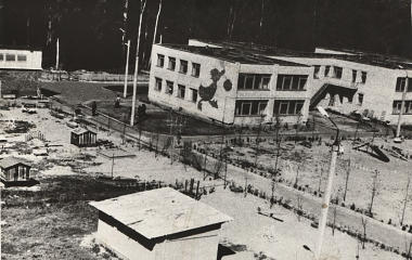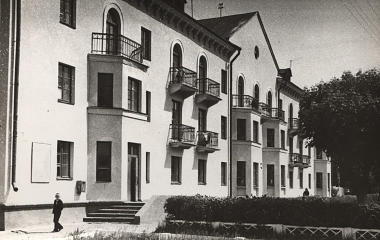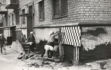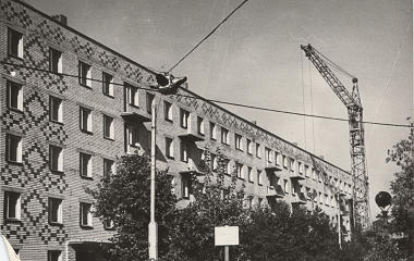 Облицовка цоколя дома №42 по улице Ленина отделочной плиткой "кабанчик" (1975 год)