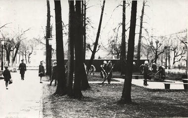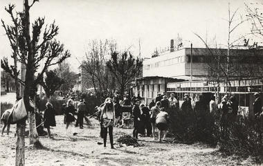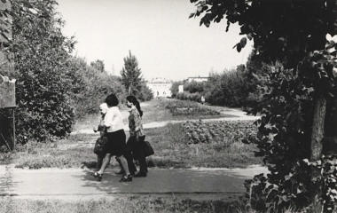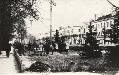 Улица Татарстан. Школьники на общественных работах у городского рынка (1975 год)