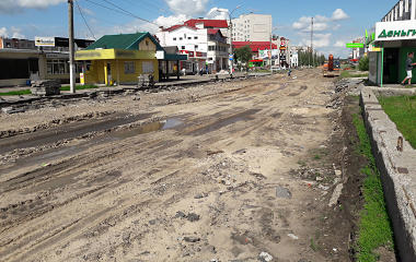 На улице Энгельса около домов №№11 и 13 после обильных дождей много лет подряд возникали огромные лужи. Пешеходы замучились их обходить. Сейчас здесь началась реконструкция дорожного покрытия.